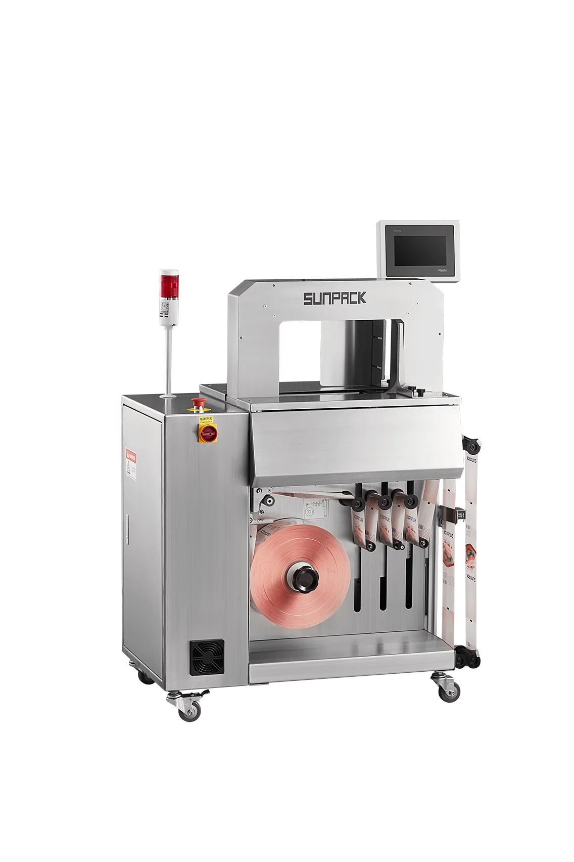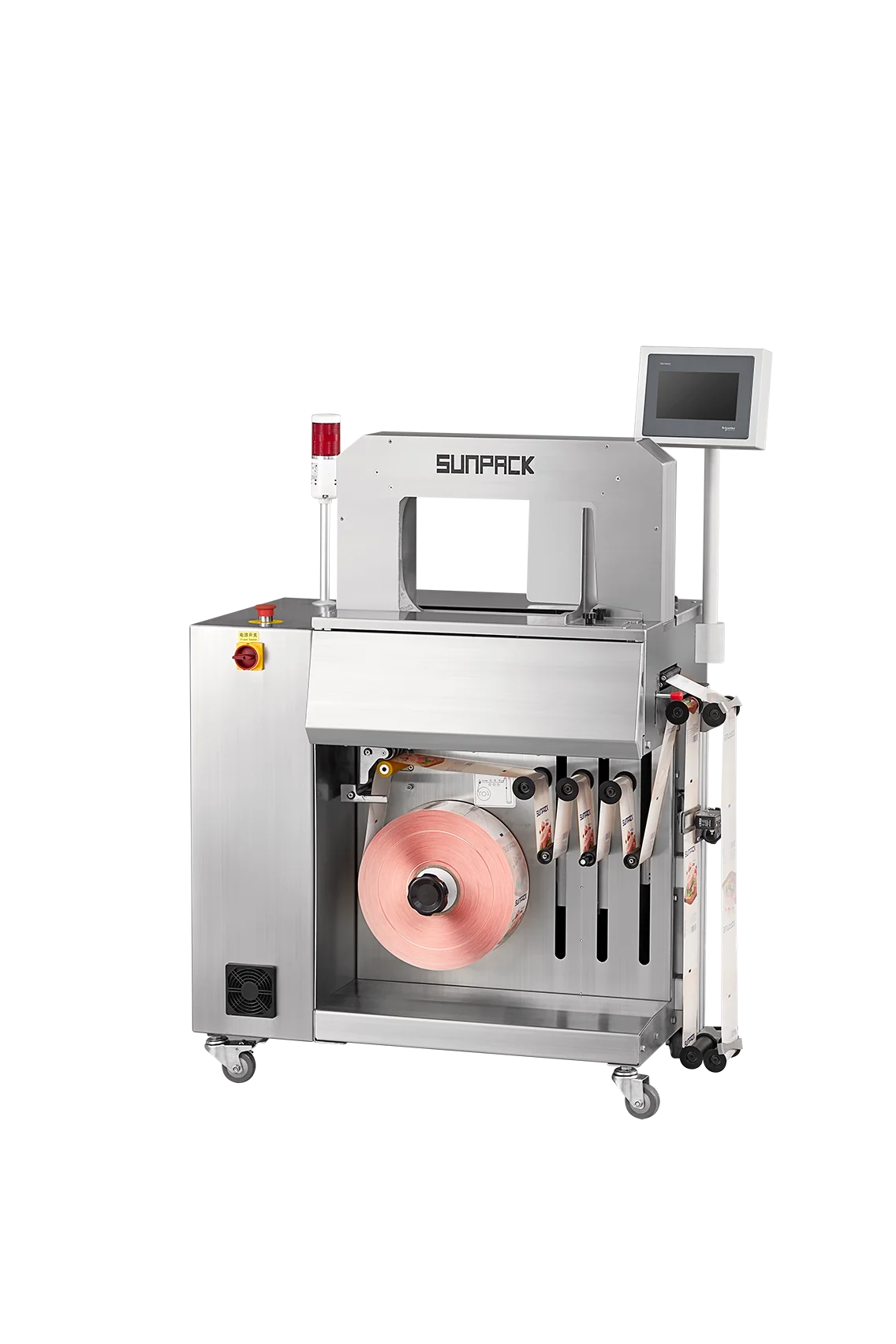 配備可裝載 500-1200 公尺 的 Jumbo Roller 巨型捲帶盤,能顯著減少更換耗材的頻率。對於食品業 (Food)、烘焙業 (Bakery) 或製藥業 (Pharmaceutical) 等高節奏生產環境來說,是提升 OEE (設備綜合效率) 的關鍵。