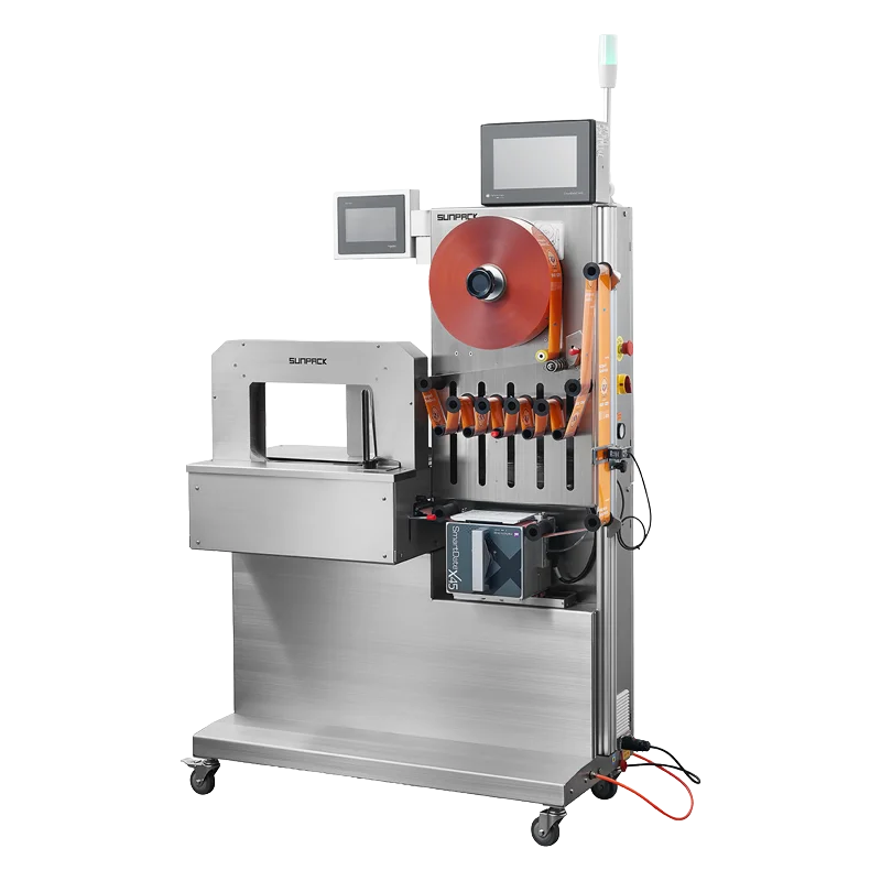 機身內部無縫整合熱轉印列印機(TTO),讓您在束帶的同時,直接在帶子上印製有效日期、批號、成分或條碼。這消除了額外貼標的成本,並確保包裝資訊與產品緊密結合,不易脫落。