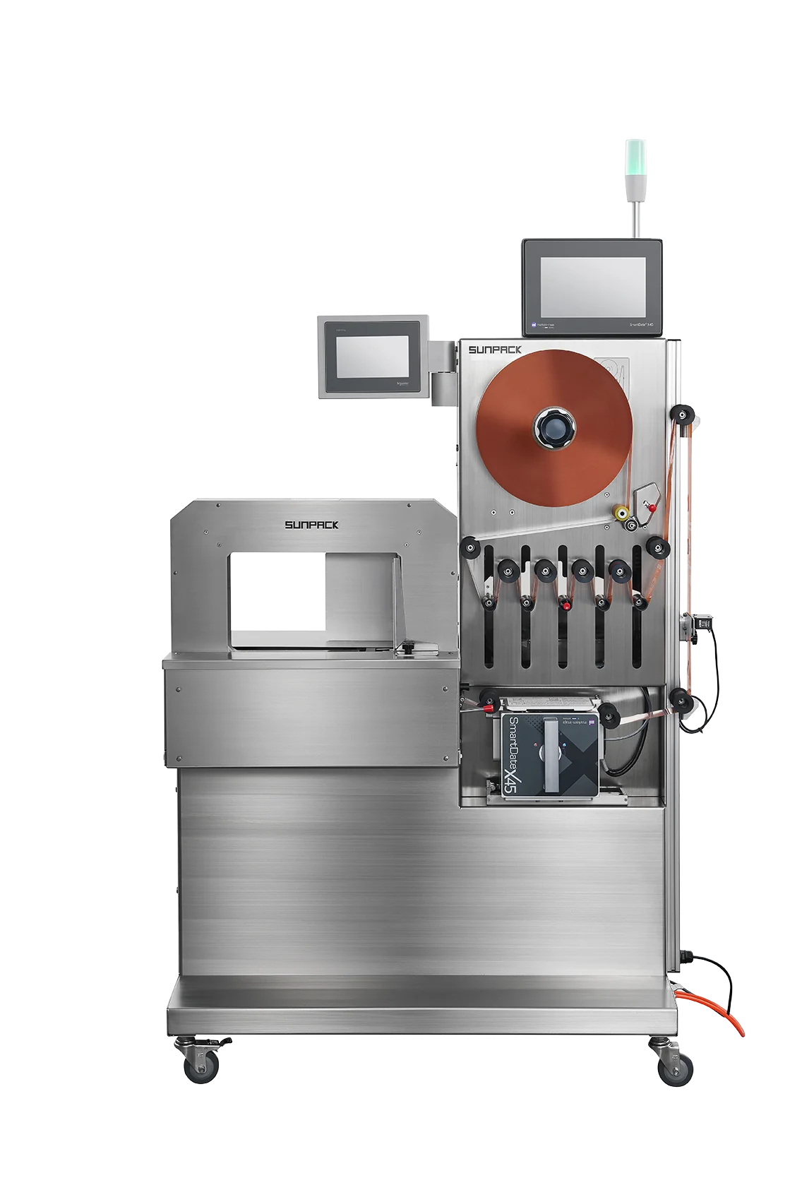 採用真空吸風定位技術,即使是使用 40mic 的極薄 OPP 薄膜,也能精準吸附送帶。同時,此系列支援從 30mm 到 150mm 的超寬幅束帶,為產品提供更佳的展示面與品牌推廣空間。