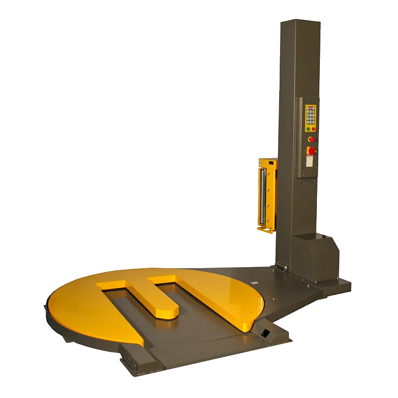 AP300W 是專為「以手動油壓拖板車為主要搬運工具」的倉儲環境量身打造。它打破了傳統包裝機轉盤高度的限制,採用特殊的開口式轉盤結構 (W型/E型),讓拖板車可以直接將棧板送入轉盤中心。這意味著您不需要購買堆高機,也無需安裝佔空間的長斜坡,是提升空間利用率與作業安全性的智慧選擇。