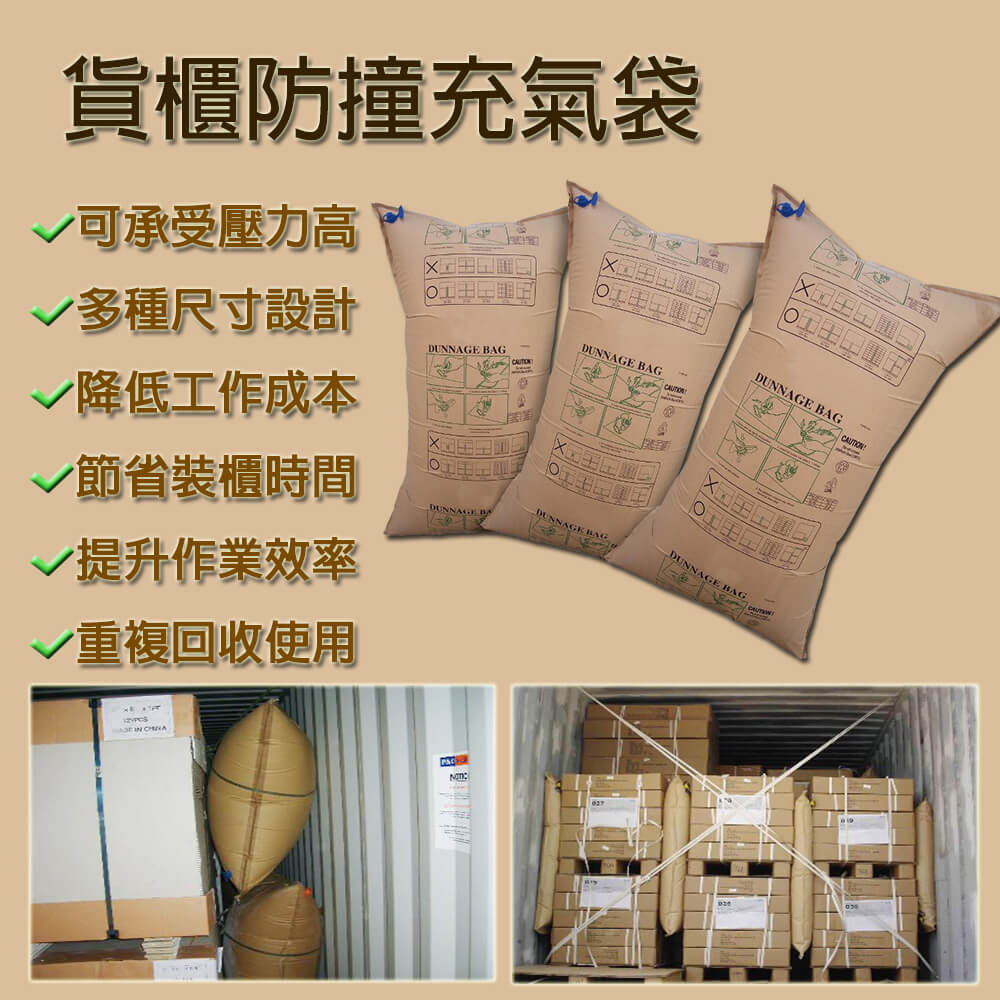 貨櫃充氣袋(Dunnage Bag),又稱貨櫃防撞袋,是現代物流運輸中不可或缺的保護利器。其運作原理是結合「牛皮紙表面的高摩擦力」以及「袋內空氣產生的強大緩衝力」。透過選擇適當尺寸的充氣袋,將其填充於貨櫃內棧板之間或貨品間的縫隙,能像氣牆一樣穩穩固定棧板與貨物,確保產品在長途海運或陸運途中穩若磐石,百分之百安全抵達目的地。