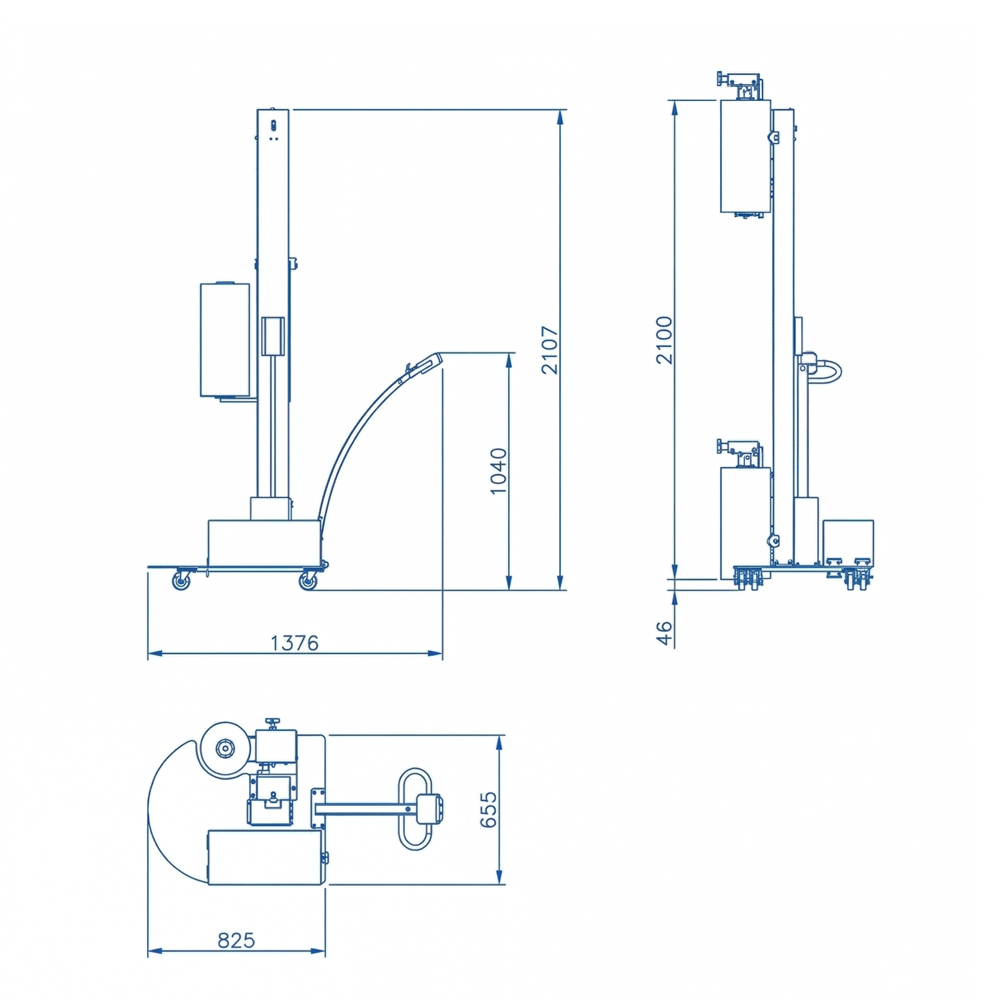 本設備採手動推行設計,核心構造包含垂直升降柱與動力膠膜架