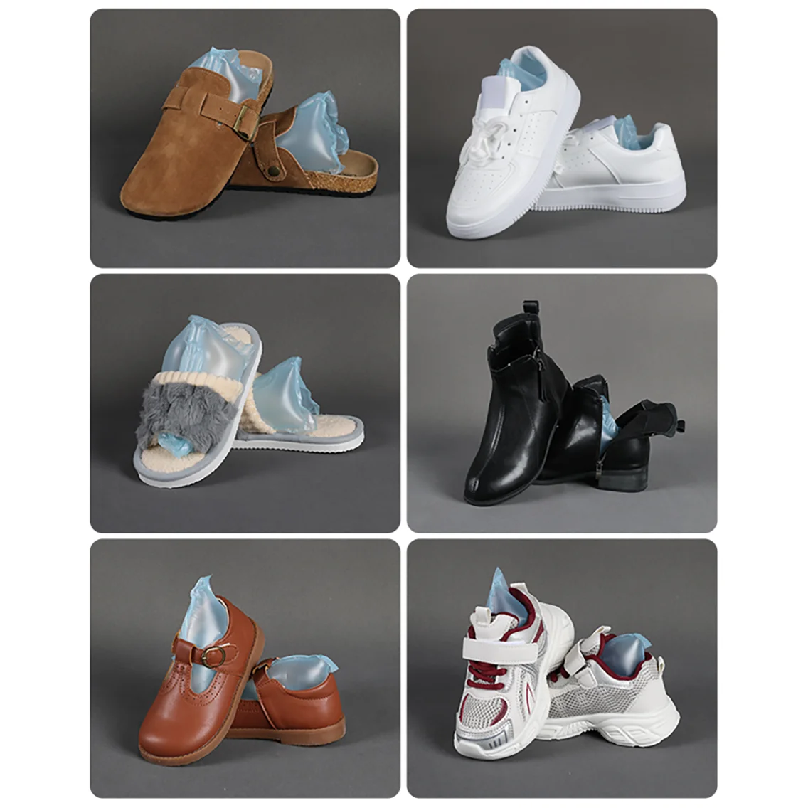 適用鞋款 (Applications) | 男鞋、女鞋、童鞋 | 可根據不同鞋型與尺碼需求,提供對應的充氣袋尺寸。 |
