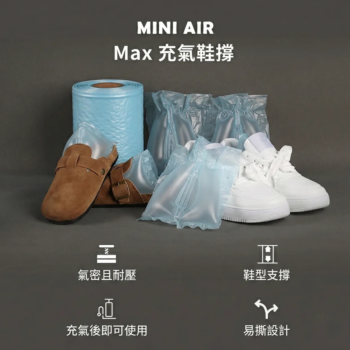 告別傳統笨重的牛皮紙團與昂貴的硬塑膠鞋撐!MINI AIR® Max Inflatable Shoe Trees 是專為現代鞋類供應鏈打造的革命性解決方案。我們採用創新的 15μm MAX 薄膜技術,在極致輕薄的厚度下,提供令人驚豔的強韌支撐力,確保您的鞋類產品從工廠到消費者手中,始終保持完美楦型。