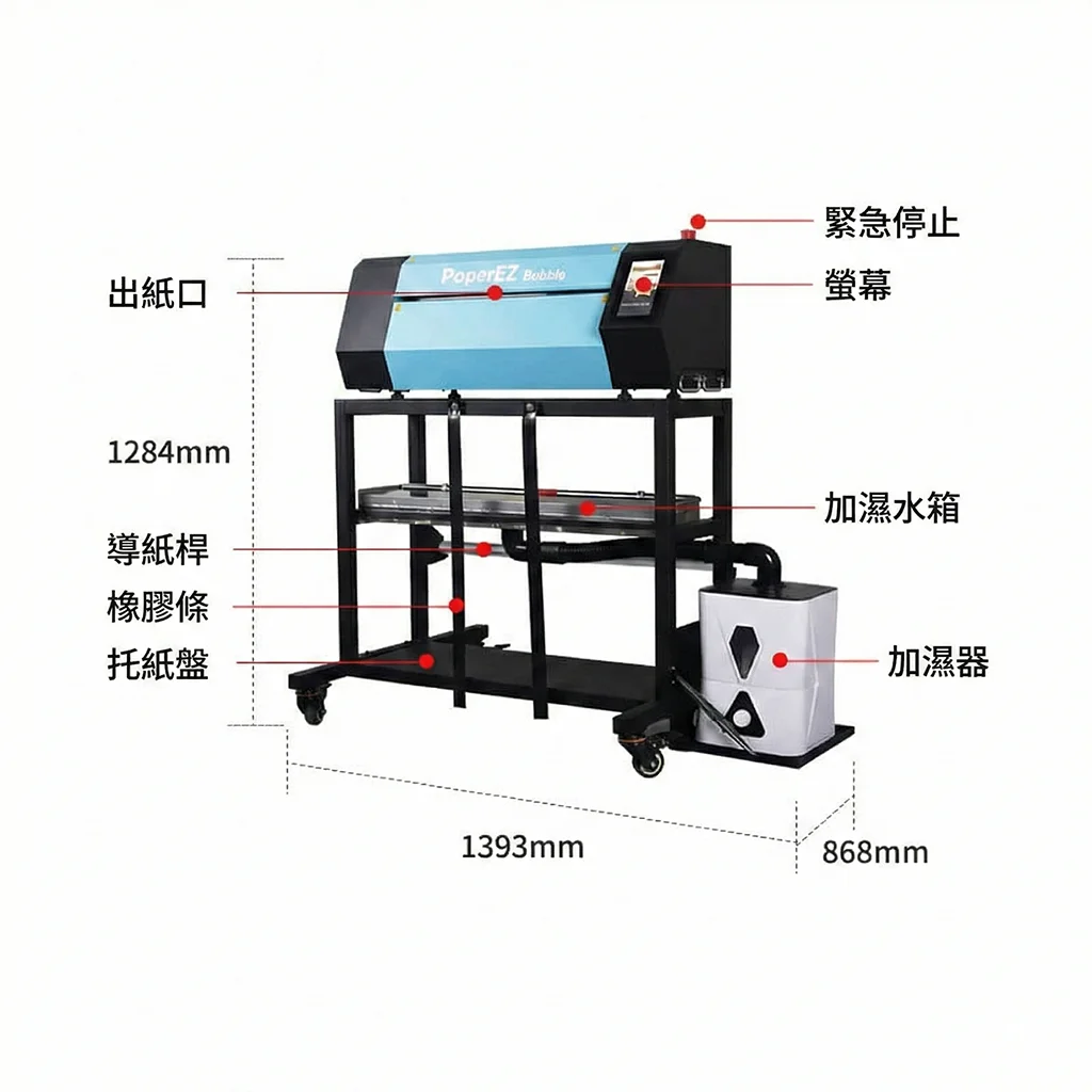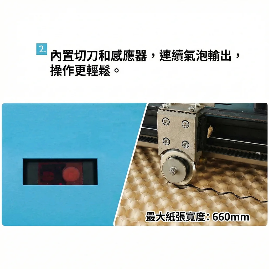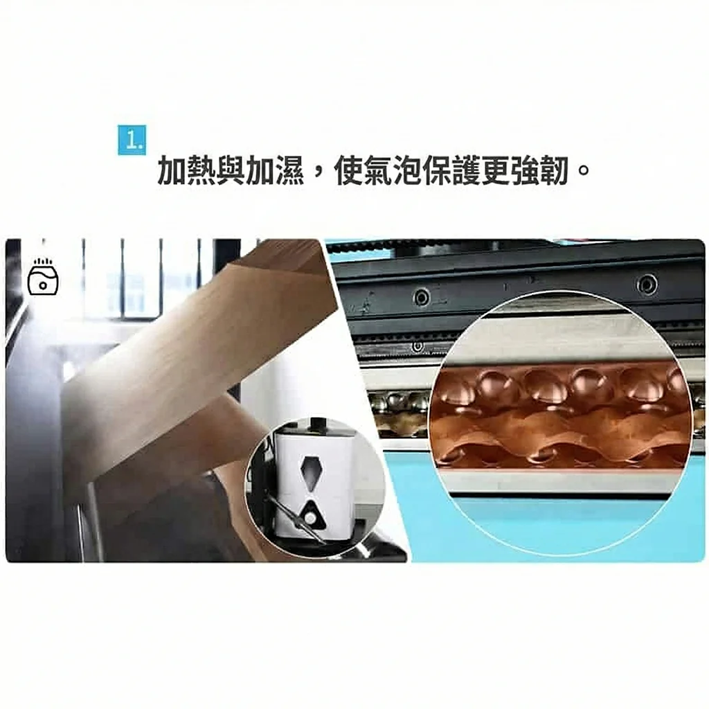 獨家強化技術 (Advanced Technology): 配備創新的加熱與加濕系統,在壓製過程中優化紙張纖維,產出比一般機型更堅固、更持久的紙氣泡,提供極致的緩衝保護。
