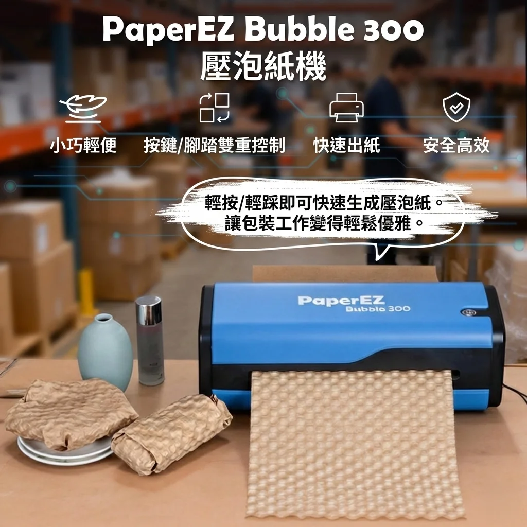 從精密電子產品到工藝品,PaperEZ® 300 都能提供美觀且堅固的緩衝保護,是追求高效運作與環保形象的電商賣家及企業的首選設備。