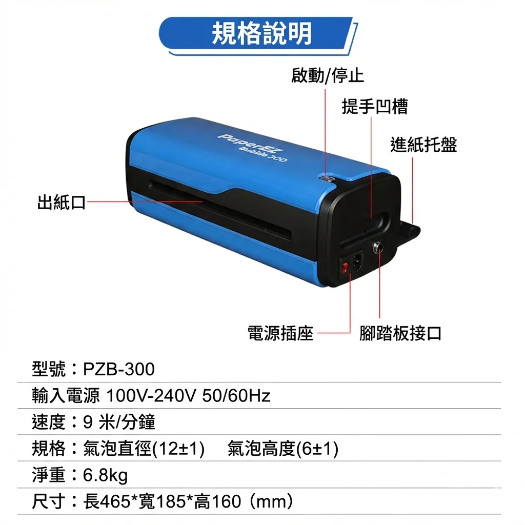 | 設備類型 | 桌上型智能壓泡紙機 (Desktop Paper Bubble Machine) |