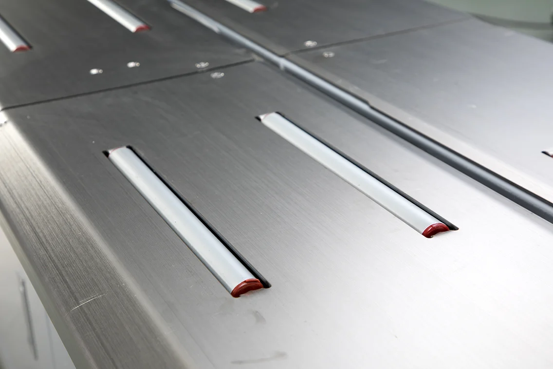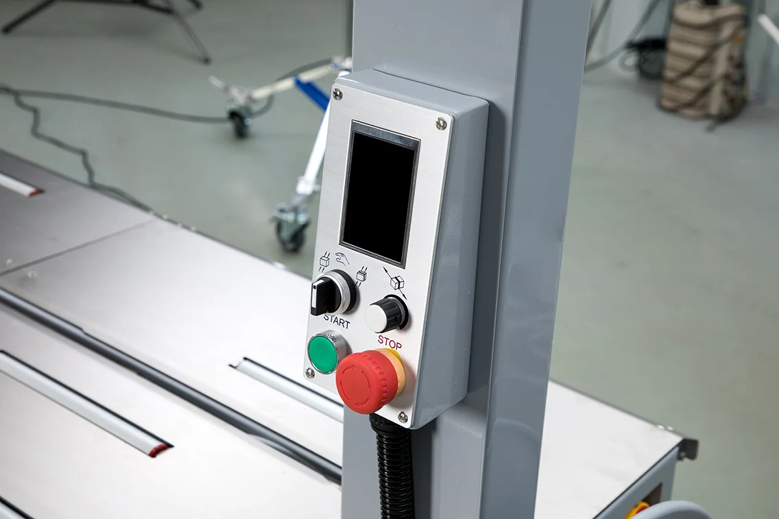 突破標準機型的尺寸限制,Q8-22060 擁有寬達 2200mm 的過帶弓架。這使得它成為包裝 木門、鋁窗、太陽能板、大型床墊 等寬扁型產品的理想選擇,無需人工費力纏繞,一鍵即可完成捆紮。