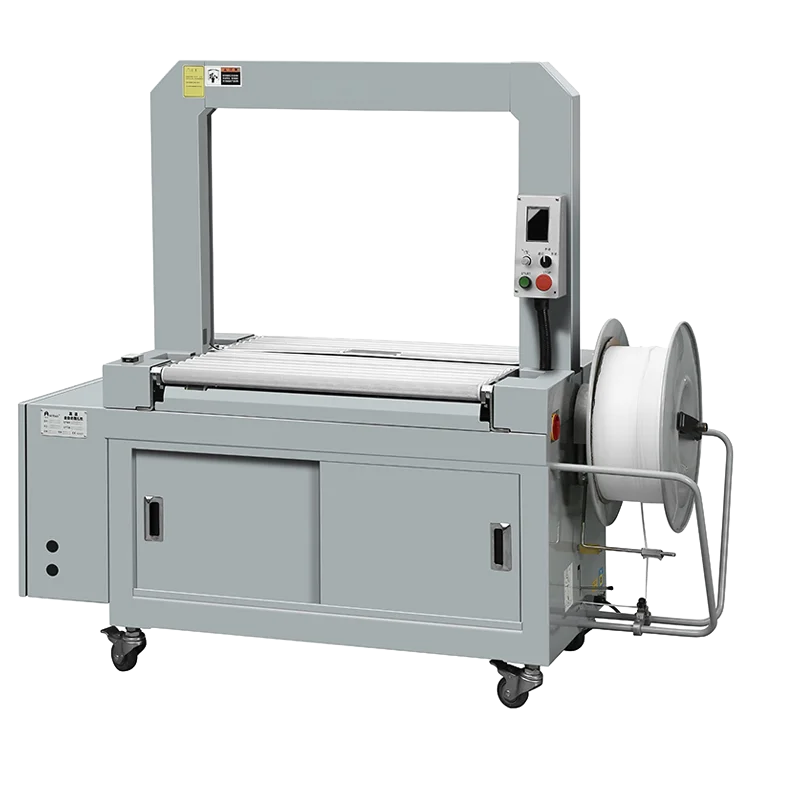 Q8-A 是專為現代化自動生產線設計的高階打包機。不同於一般需要人工推動貨物的機器,Q8-A 配備了變頻控制的動力鋁滾筒檯面,能夠自動將貨物送入、定位、捆紮並送出。它是日用化工、食品飲料等高產量行業實現包裝自動化的理想選擇。