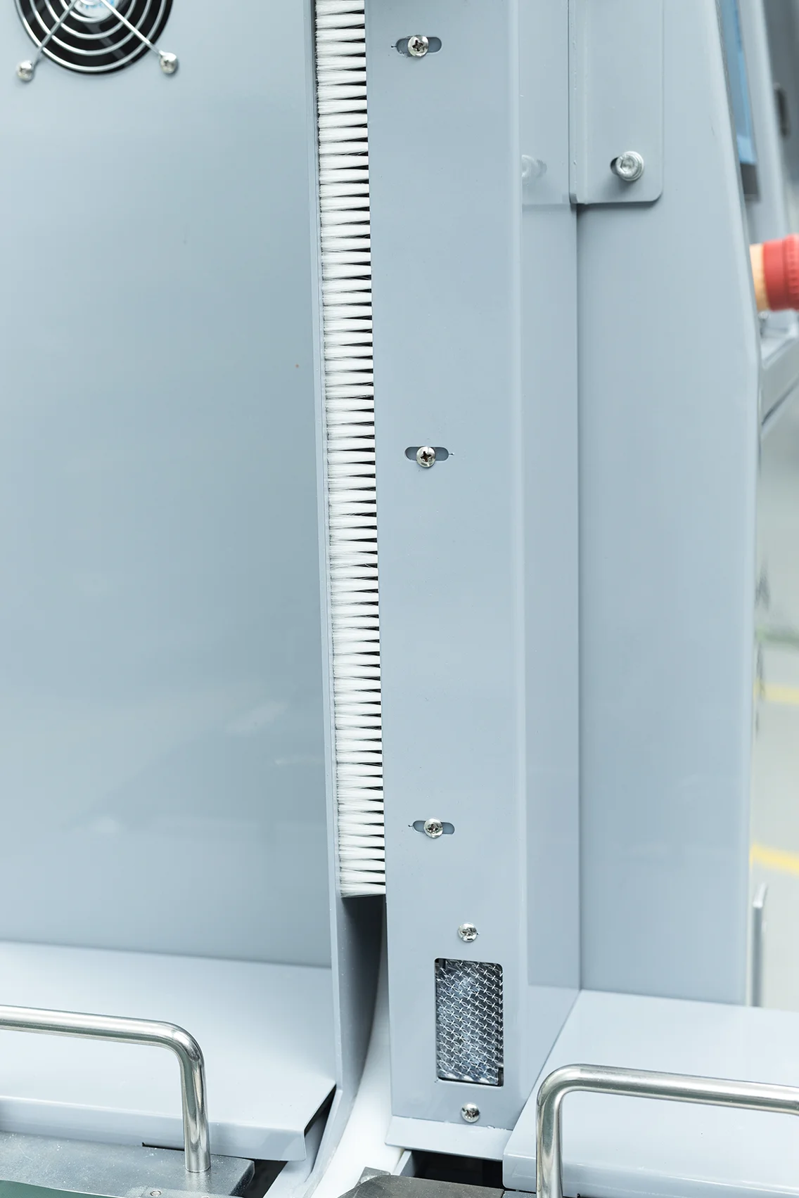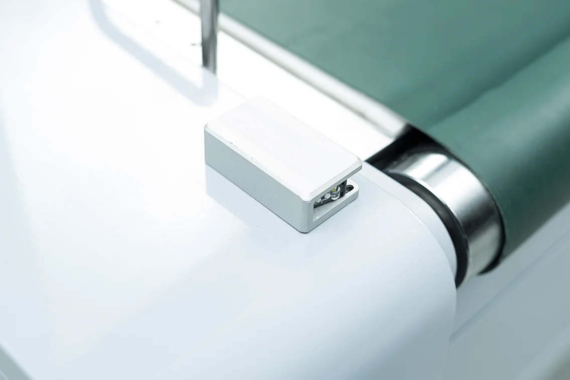 Q8LSC-M2 是 Q8 系列中的高階應用機型。它捨棄了傳統的金屬滾筒,改用「雙皮帶」進行動力輸送,並將機身降低。這種設計專門解決了兩個痛點:一是防止產品底部被刮傷,二是適應低高度的自動化生產線。