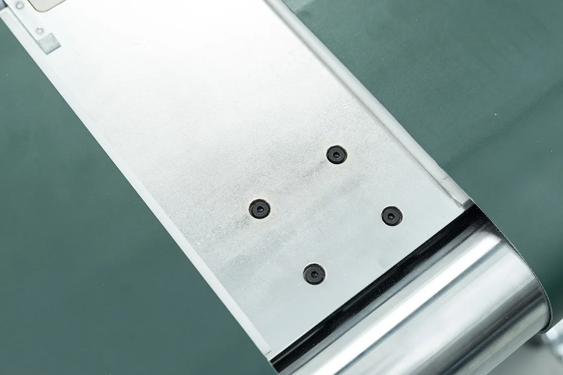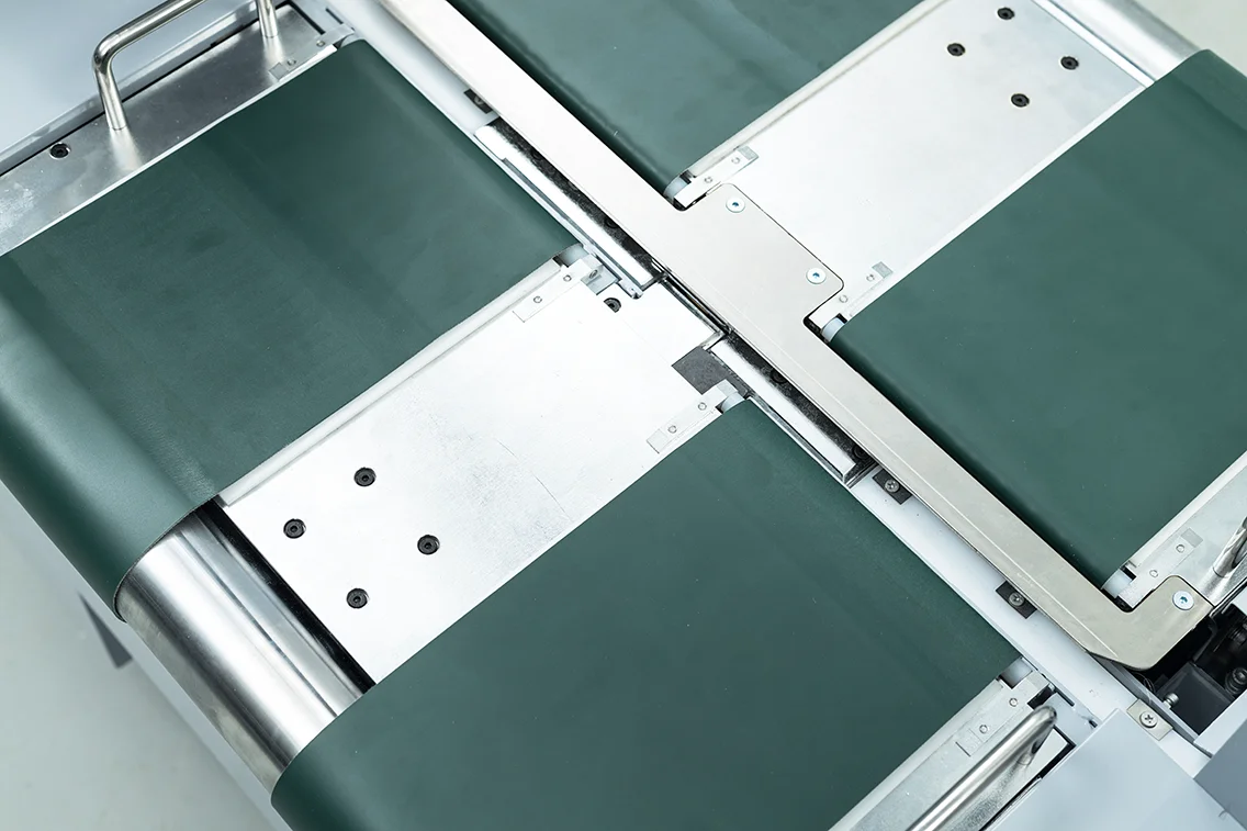 重物友善: 雖然是皮帶輸送,但低檯面設計讓人工搬運重物上機(如整疊紙張)時更加省力。