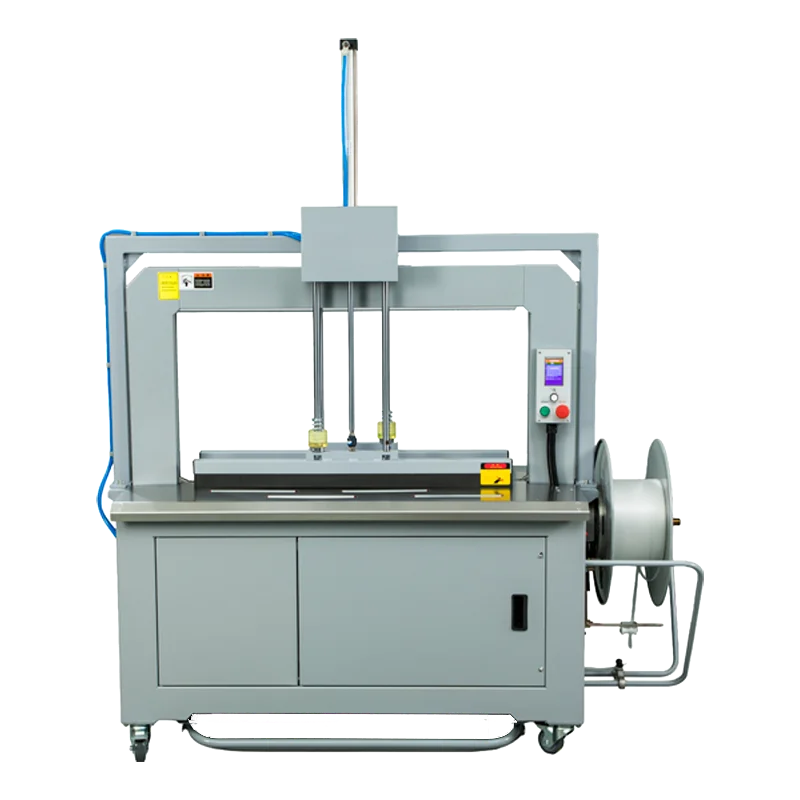 Q8P 系列是專為「難以捆緊」的貨物所設計的全自動打包解決方案。透過內建的頂部加壓(Top Press)機構,機器能在送帶前先對包裝物施加壓力,排空多餘空氣或壓縮彈性空間,確保捆包完成後貨物緊實、堆疊整齊。