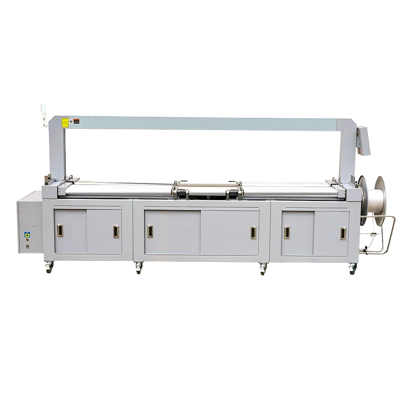 Q8VC2-T 是工業包裝產線中的重型戰艦。它突破了標準打包機的尺寸限制,專為體積龐大且重量沉重的產品而生。無論是整扇門板、大型窗框、床墊還是成疊的建材,Q8VC2-T 都能透過其堅固的鋼製滾筒與巨大的弓架,提供快速、穩定的自動化捆紮服務。