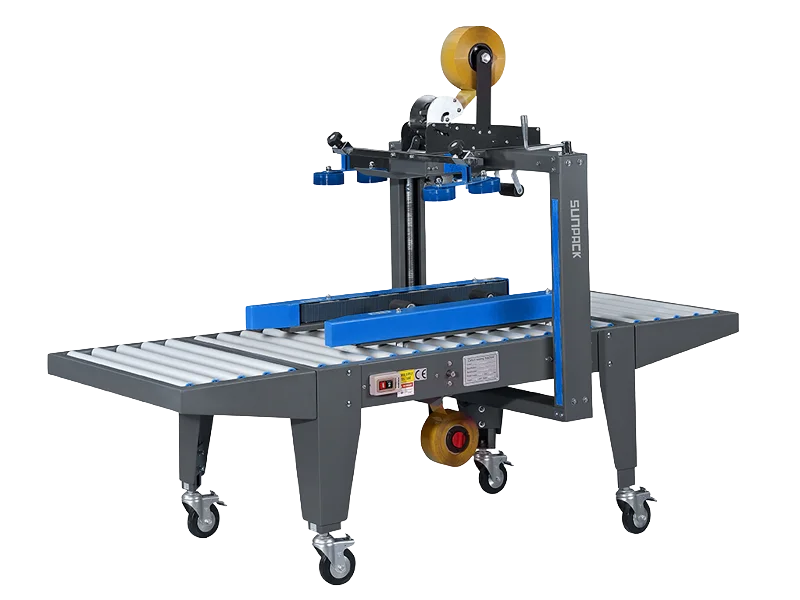側帶同步驅動: 左右皮帶強力夾持,確保紙箱運行軌跡平直,封口位置精確不歪斜。