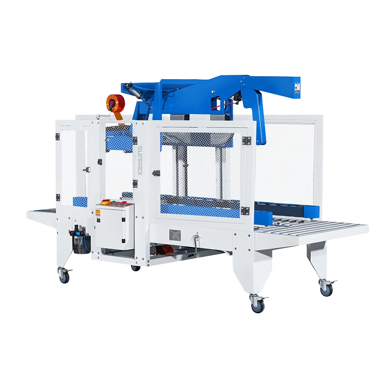 自動摺蓋功能: 前端自動摺疊紙箱上蓋,完全取代人工摺蓋作業。